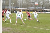 De wedstrijd gaat dan aardig gelijk op al heeft de FC wel meer balbezit. In de 24ste minuut scoort Joop Oosterhof maar die staat helaas buitenspel. Joop die te horen heeft gekregen dat hij vertrekken moet aan het einde van dit seizoen en dat is erg jammer want hij speelde een sterke najaar competitie. In de 34ste minuut is het wederom Dirk Baron die moet redden en nu op een goed afstandsschot. Direct daarna een snelle en mooie aanval van de FC maar Roy Leicester schiet helaas in kansrijke positie naast. In de extra tijd van de eerste helft komen de gasten dan langszij als vanuit een hoekschop Lucas Vennegoor of Hesselink voor Sven Bouland komt en raak kopt, 1-1. Gezien het wedstrijdbeeld wel verdiend. Bij de Tukkers speelt trouwens wel ene Jort Ribbers en die is volgens ons cum laude geslaagd voor zijn diploma voor de toneelschool want wat die allemaal uitspookte. Bij iedere contact als een stervende zwaan gaan liggen en schreeuwen en de hele tijd maar zeuren bij de best wel warrig fluitende scheidsrechter Mitchell van Laar.